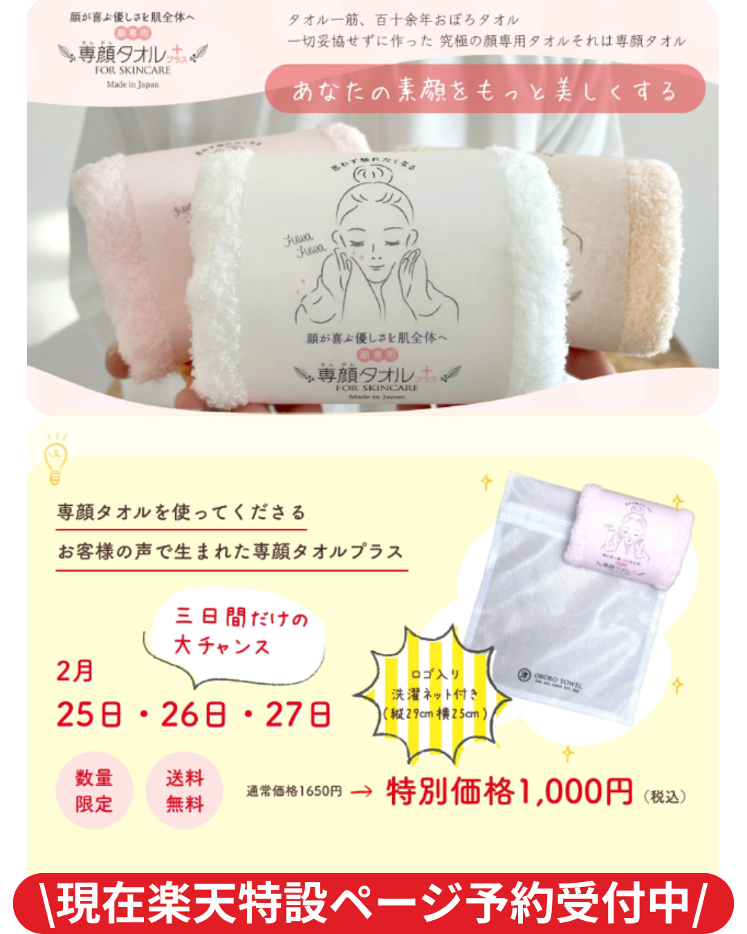 販売開始以降60万枚以上売れた専顔タオルの新たな形、ぜひこの機会にお買い求めください。